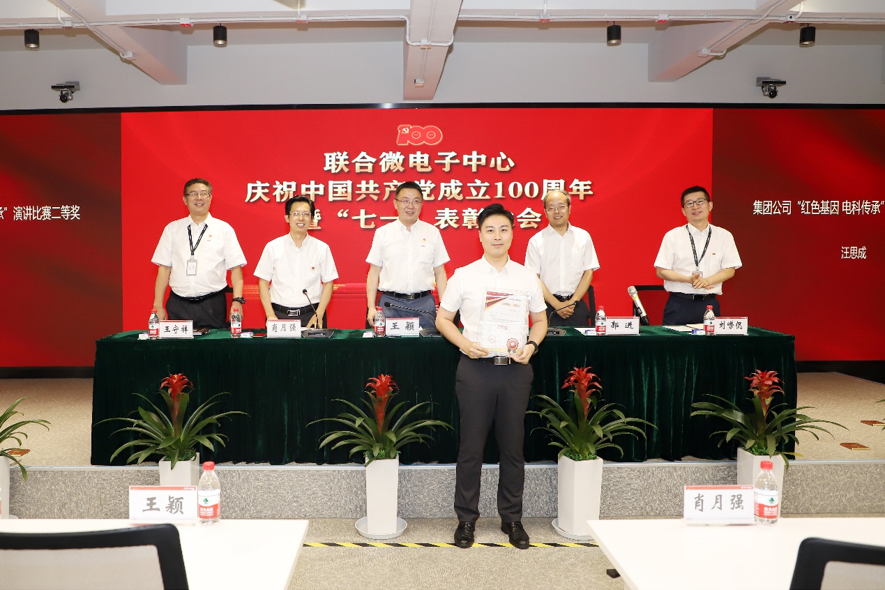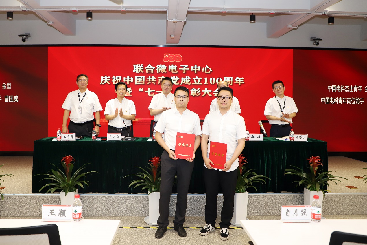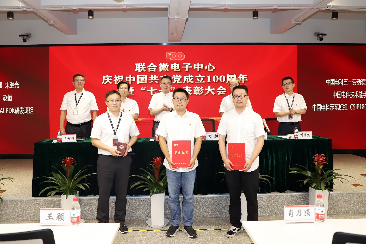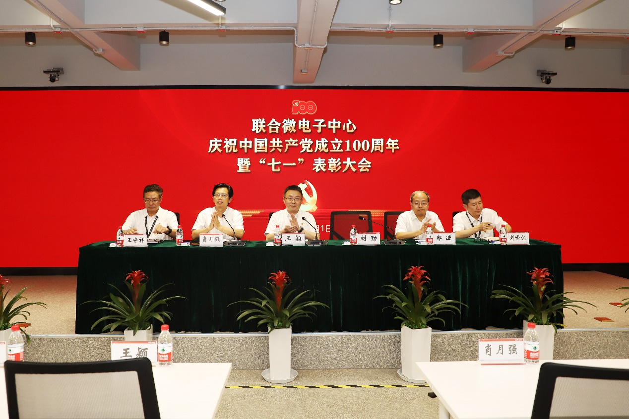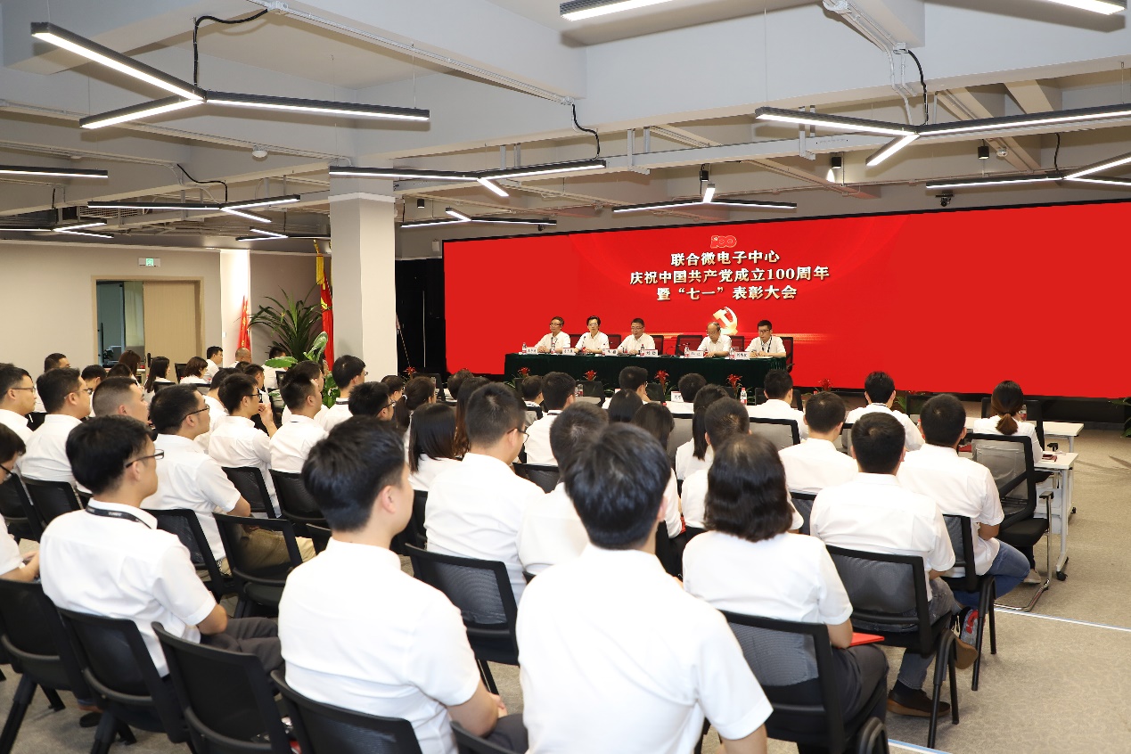 会上,王颖带领全体党员干部面向党旗重温入党誓词,并做专题报告;郭进宣读了《中共联合微电子中心有限责任公司委员会 2020-2021年度“七一”表彰决定》,领导班子成员为获得表彰的优秀共产党员、优秀党务工作者、优秀党员攻关团队和集团公司“两优一先”获得者颁奖,并对7个党员攻关团队进行了授旗。